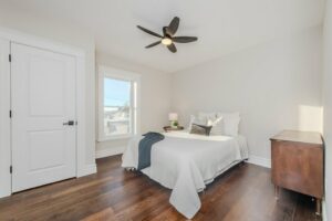 - Four spacious bedrooms on the second level. The primary bedroom features a luxurious bathroom and a walk-in closet with built-in cabinets.